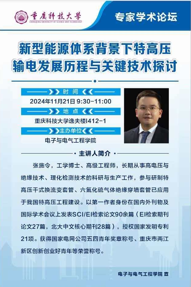 11月21日:专家学术论坛 新型能源体系背景下特高压输电发展历程与关键技术探讨