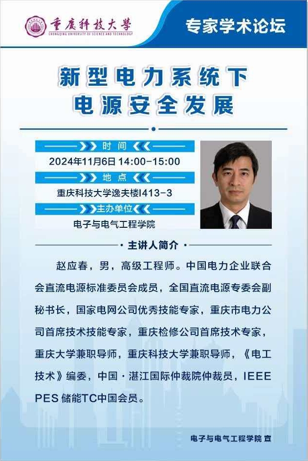 11月6日:专家学术论坛 新型电力系统下电源安全