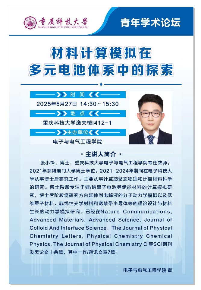 5月27日:青年学术论坛 材料计算模拟在多元电池体系中的探索