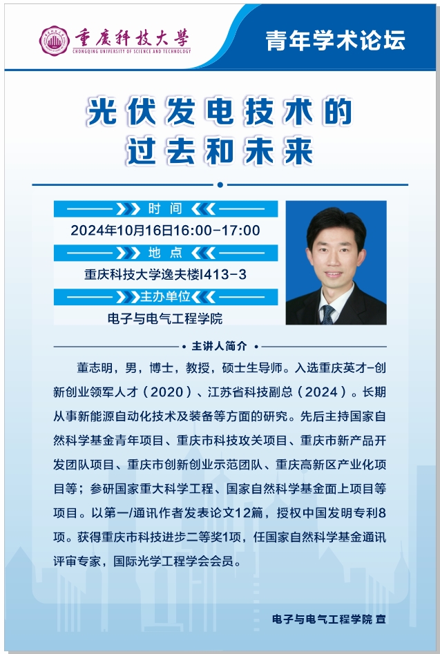 10月16日:青年学术论坛 光伏发电技术的过去和未来