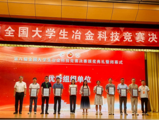 2025年7月20日,由教育部高等学校材料类专业教学指导委员会指导、中国金属学会主办、北京科技大学承办、北京金恒博远科技股份有限公司提供技术支持的第八届全国大学生冶金科技竞赛顺利落下帷幕。我校共派出44支队伍参赛,经过激烈角逐,我校学生凭借扎实的专业功底、敏锐的创新思维和卓越的团队协作能力,一路过关斩将,最终获得全国特等奖1项、全国一等奖8项、全国二等奖7项、全国三等奖5项,学校荣获“优秀组织单位奖”。