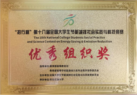 近日,由教育部高等学校能源动力类专业教学指导委员会指导、全国大学生节能减排社会实践与科技竞赛委员会主办的第十八届全国大学生节能减排社会实践与科技竞赛决赛在东北石油大学举行。我院精心组织、全力备赛,经过网评、会评和决赛现场赛等阶段的层层选拔,最终获主赛道三等奖4项,并获优秀组织奖。