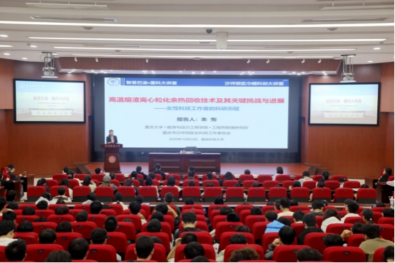 10月23日下午,国家杰出青年科学基金项目获得者、国家级创新领军人才朱恂教授应邀做客我校“智荟巴渝・重科大讲堂”,为我校师生作题为《高温熔渣离心粒化余热回收技术及其关键挑战与进展》的学术报告。沙坪坝区妇联党组书记、主席陶慧,沙坪坝区科协副主席王丽娟,重庆科技创新与产业融合发展研究院、科技处负责人及全校师生代表400余人在学术报告厅聆听报告。报告由科技处副处长王丽萍主持。