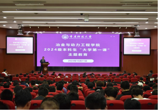 为助力2024级本科新生平稳迈入大学新阶段,帮助新生更快适应大学环境,找准人生坐标,树立崇高理想,明确未来方向,为大学生活奠定坚实基础。2024年10月11日,冶金与动力工程学院在学术报告厅举行了2024级本科学生“大学第一课”主题教育活动,学院班子成员、系主任、辅导员、教师代表、2024级全体本科学生,共计400余人参加了主题教育活动,会议由学院党总支书记高逸锋主持。